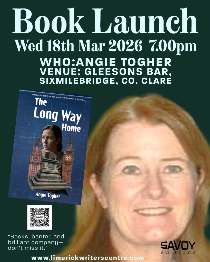 Savoy Editions announce the launch of a new novel by Limerick writer Angie Togher. The launch takes place in Gleeson’s Bar, Sixmilebridge, Co. Clare on Wed 18th March at 7.00pm. The book will be officially launched by author Madge O’Callaghan.